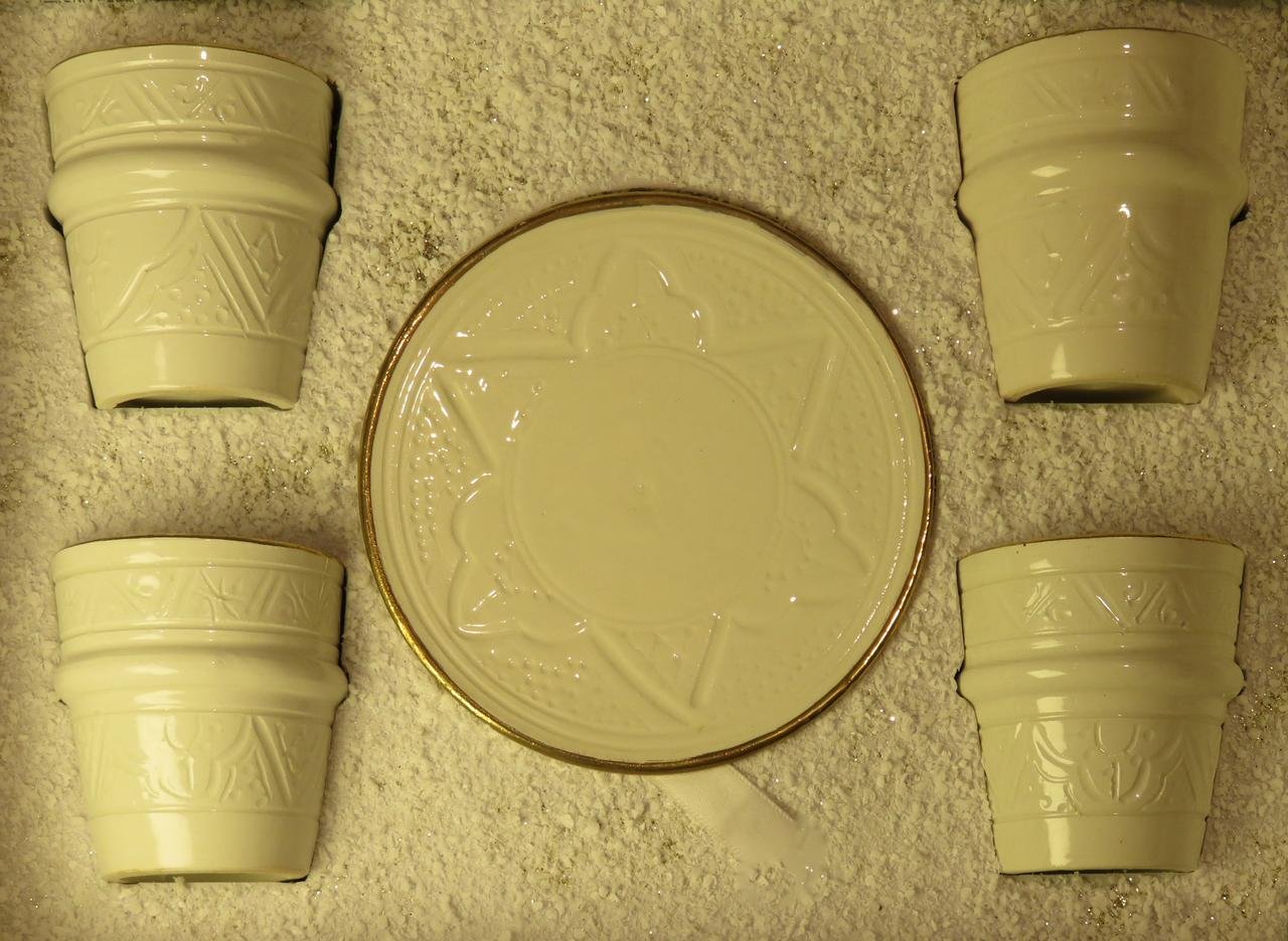 Dar Al Noor is an expression of light, calm, and quiet luxury. Subtle carved patterns emerge through a soft white glaze, inspired by sunlit interiors and desert stillness. Each piece is finished with a fine rim of real gold, adding warmth and refinement without excess.